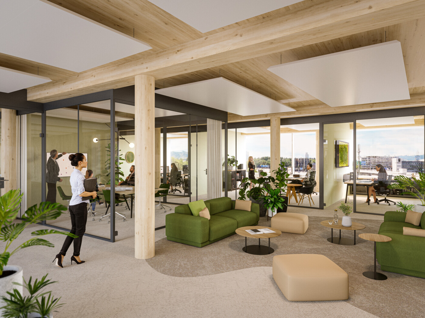 - Zukunftsweisender Arbeitsstandort mit dem besonderen und wohltuenden Raumambiente eines Holzbaus